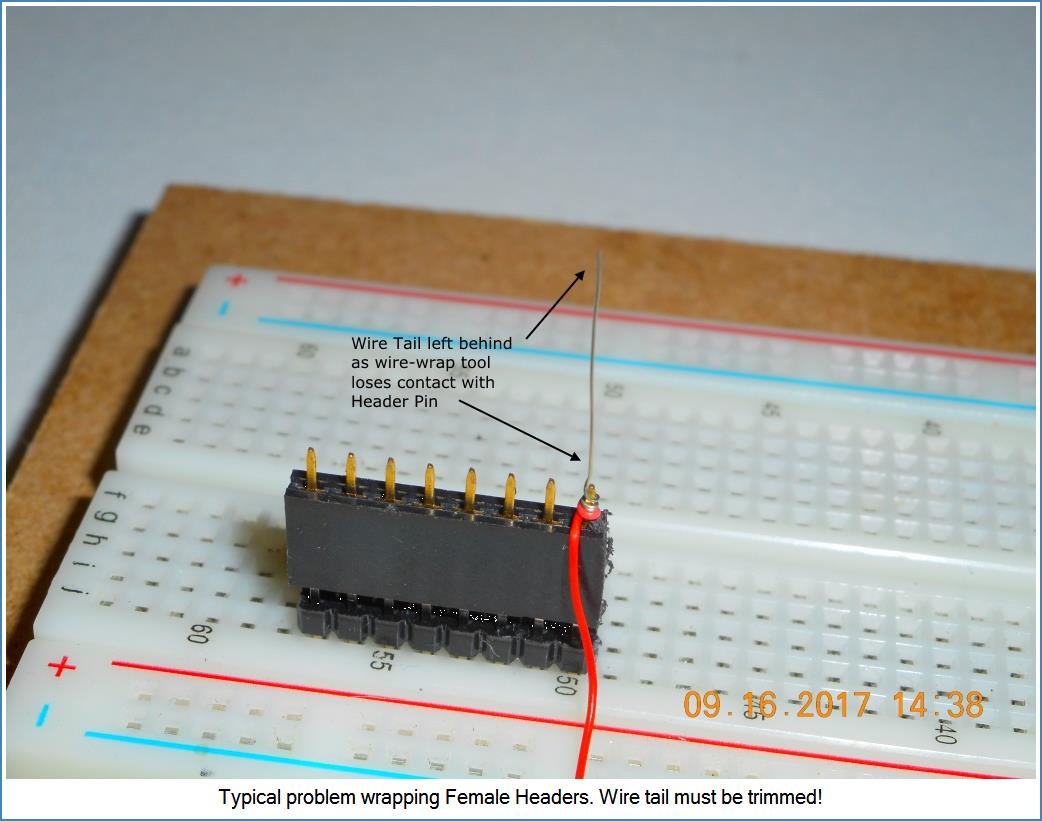 Thru-hole Female headers are also suitable for wire-wrap. But because the pin lengths are shorter than 2-Side Header pins, its tricky to accomplish. Its only possible to wrap one connection per pin.