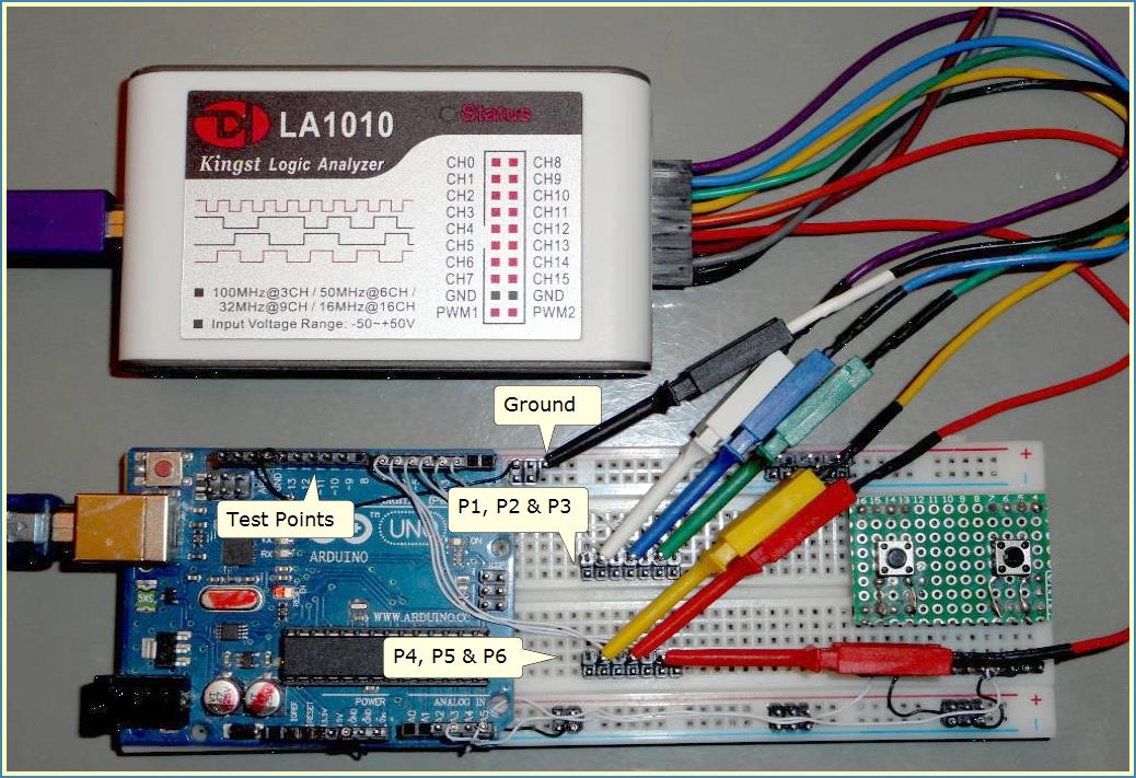 - A marker pulse from setup() to capture start-up behavior.