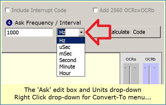 A text edit box allows you to enter the 'Ask' Frequency or Interval. The Units drop-down is selectable for Frequency or various Units of time.