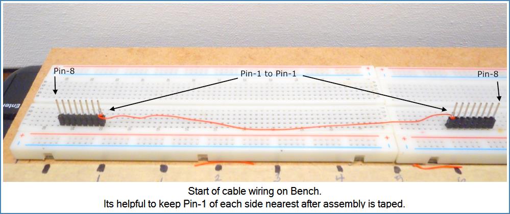Plan on wiring your cables with pin-1 ends closest to each other on the assembly bench. This technique results in cables whose pin-1 is always closest to the wires exiting each plug end! That arrangement is very helpful when connecting and checking your project.