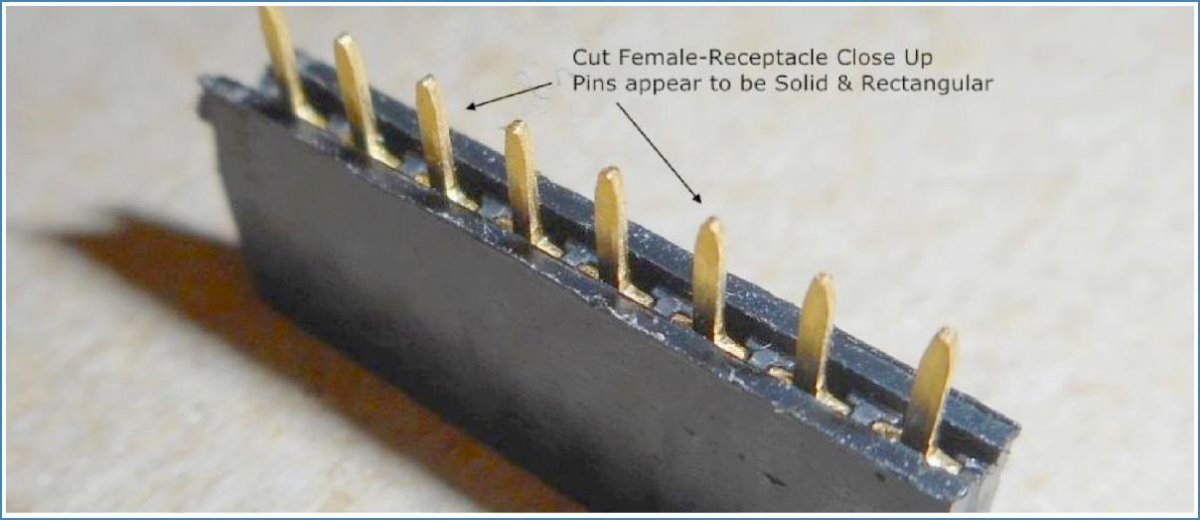 Be prepared to take more time and encounter more setbacks as you make this type cable. If possible, get the header type shown in the next image. The pins are solid metal with rectangular edges. Those rectangular edges help keep connections reliable.