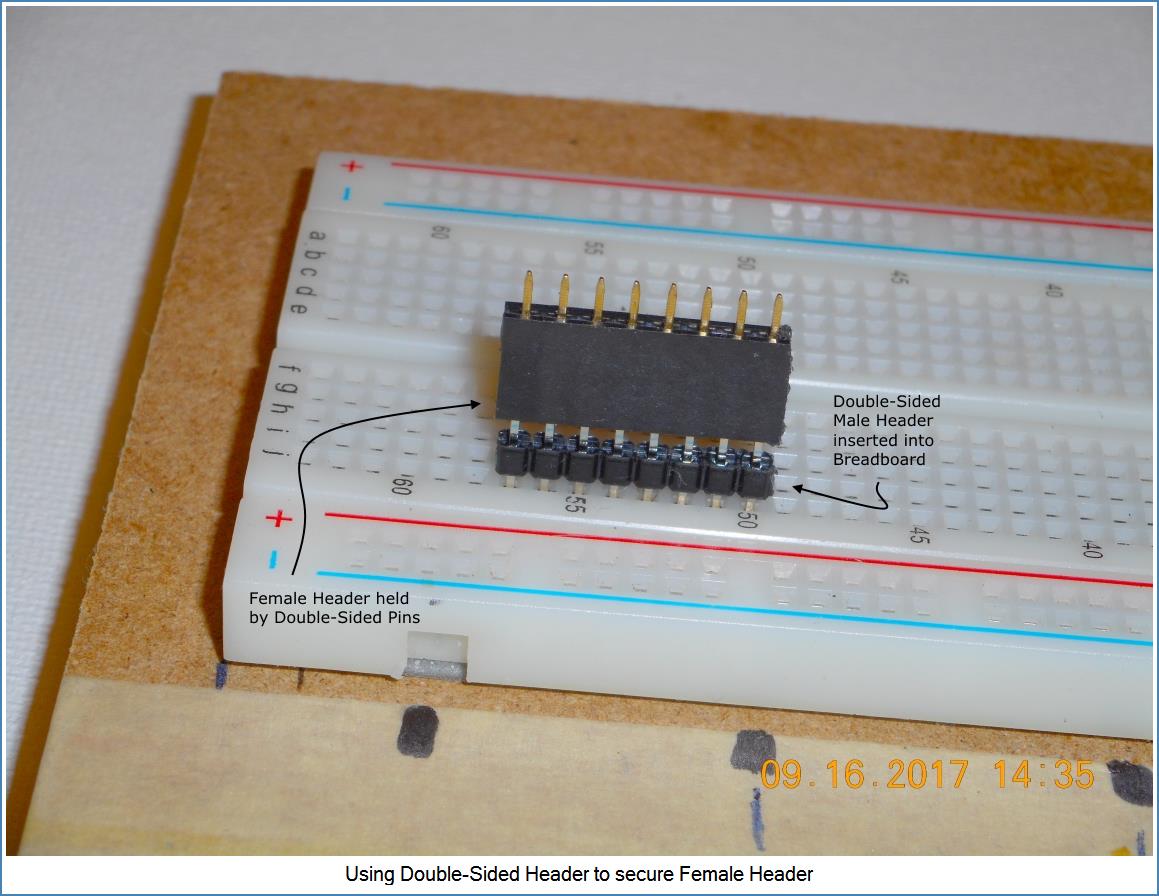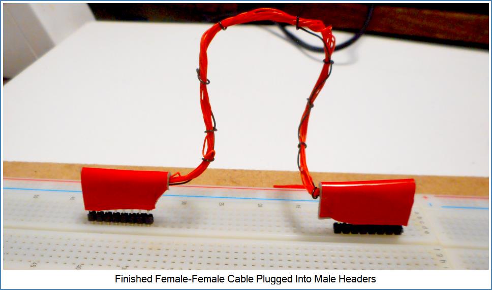 The Cable-Bench is a must for doing this type assembly. Plug male-headers into the bench first, then plug the female headers onto the male pins. This holds the females steady when wrapping wire to short pins. (Please see next image).