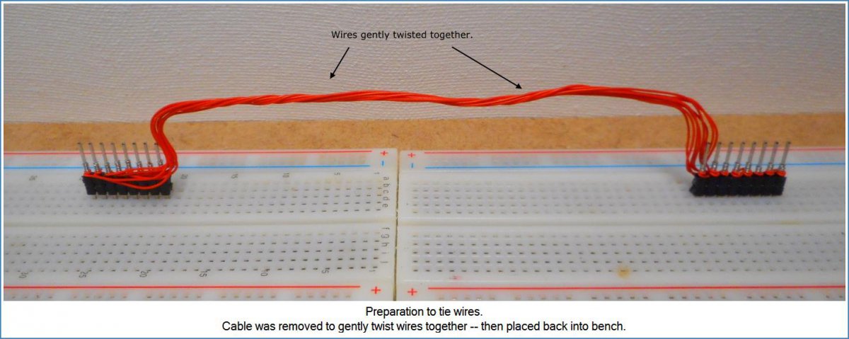 If all connections test OK, I take the cable off bench and gently twist connectors so wires wrap around each other.