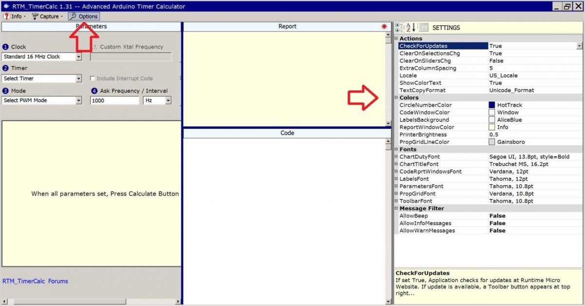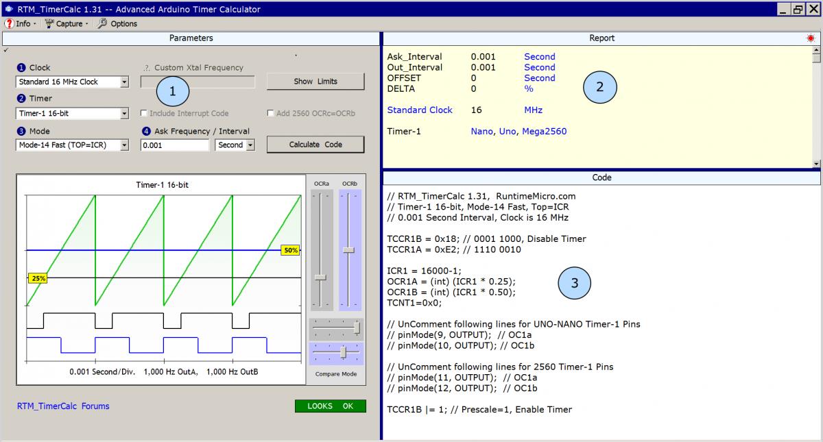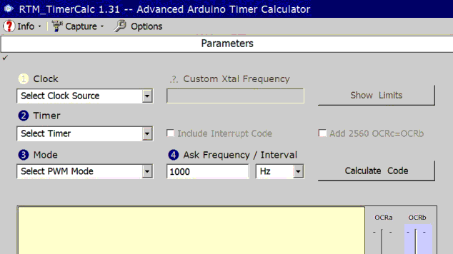 RTM_TimerCalc is an advanced Arduino Timer Calculator. It comes to you as a free WIndows desktop application. Its mission is to make easier the creation of C++ code for Arduino Timers.