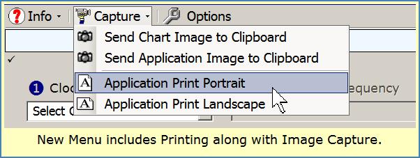 However, from Version V1.3 and beyond, TimerCalc adds Printer capability. You'll find this ability on the upper toolbar Item now labeled "Capture" (see next Image).
